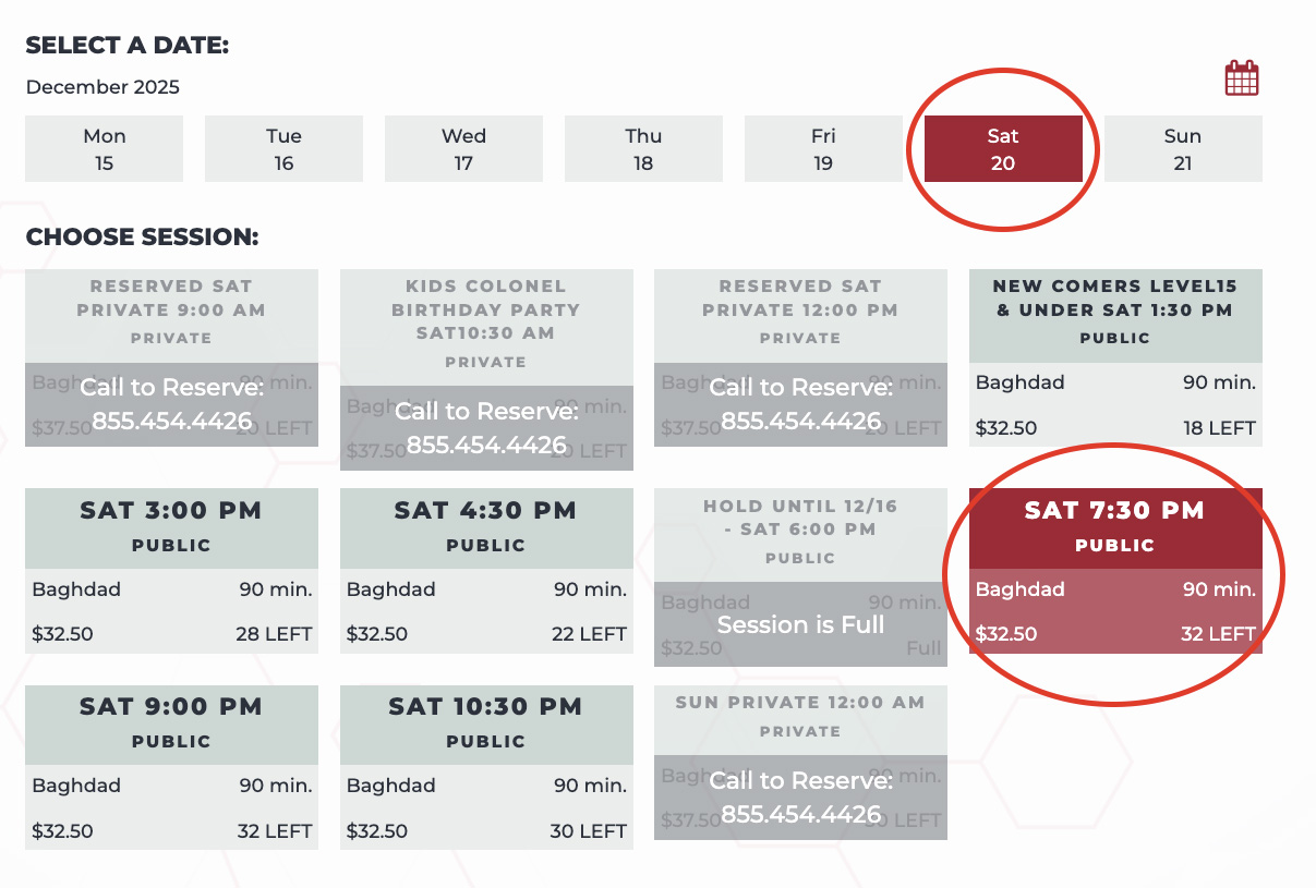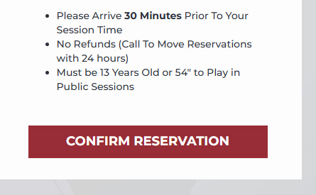 No refunds, please call to move reservations within 24 hours. Must be 13+ or 54″ tall for Public Sessions.